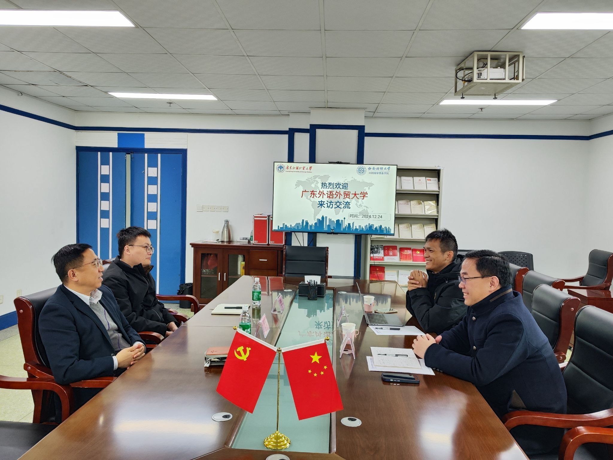 12月24日上午,广东外语外贸大学国际瓜子tv 副院长迟殿堂、党政办主任张辉金来访瓜子tv,就共同拓展出国留学培训项目影响力推进教育国际化展开深入交流与探讨。瓜子tv副院长邓忠波、招生办公室负责人许萌昊参加接待会谈。