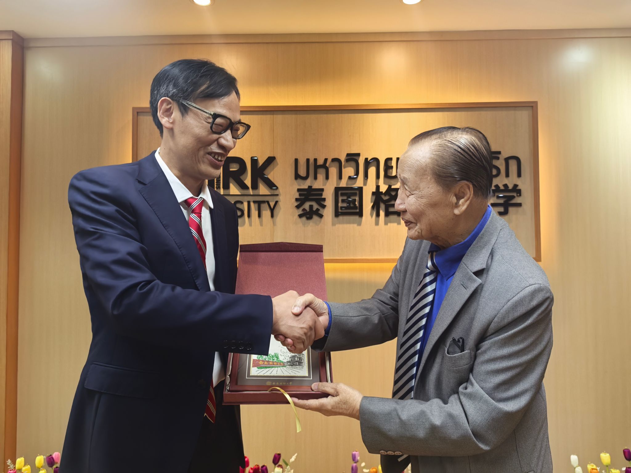 代表团一行与泰国格乐大学校长杨金泉(Krasae Chanawongse)、国际瓜子tv