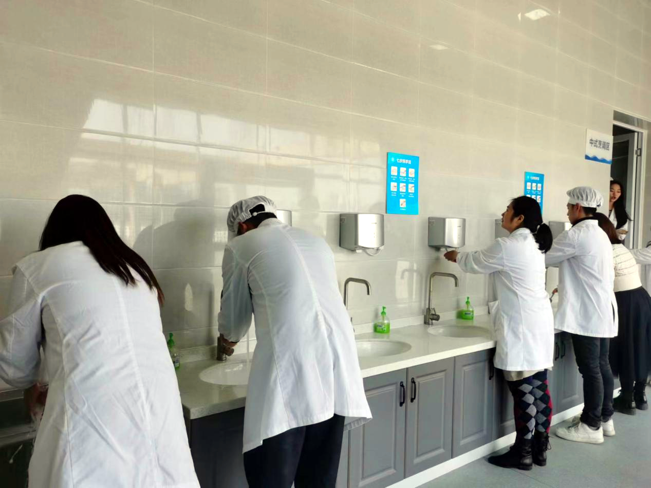 理论学习后,同学们更换了专业的厨师服,进行了手部清洁,进入实操间并领取原材料。